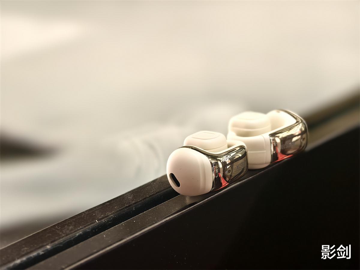 珍珠白配色真的长在审美上,不是那种死板的惨白,而是带着一点温润光泽的奶白色,机身表面做了细腻的磨砂处理,手指划过的时候滑溜溜的,还不容易沾指纹——之前用的塑料耳机,随便一摸就是一道印子,擦都擦不掉,对比之下真的太加分了。