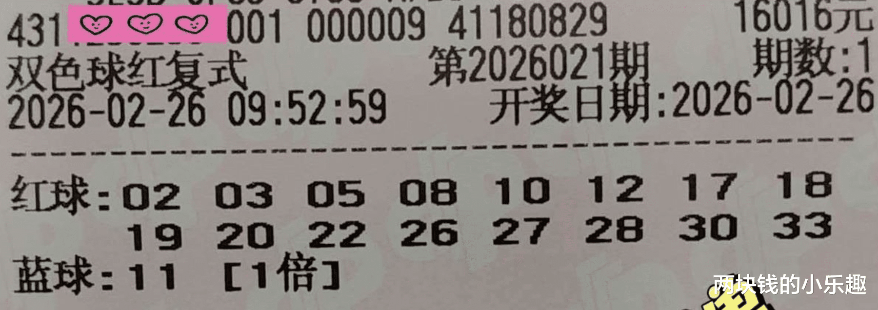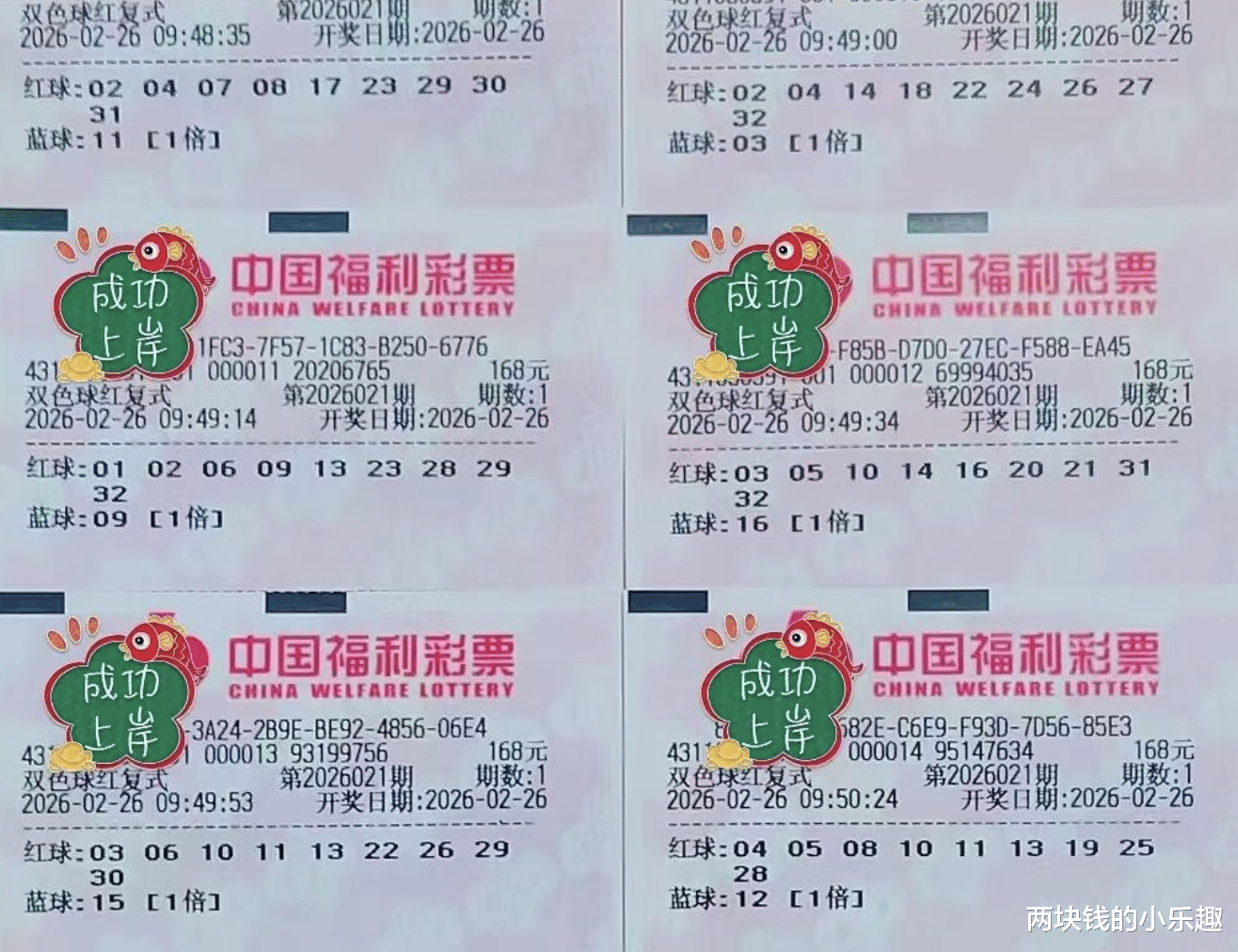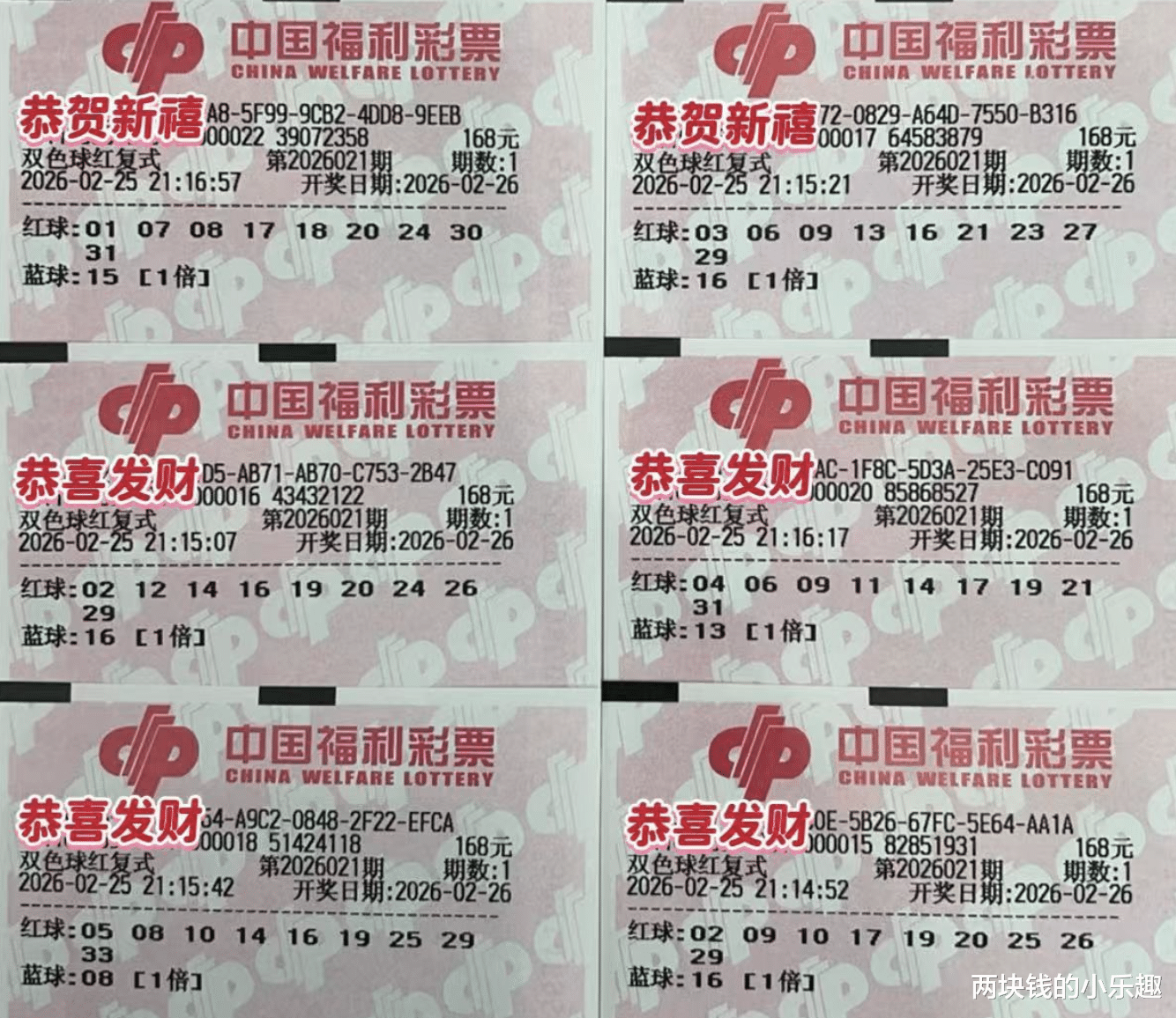 大家好,下面给大家带来的是双色球第26021期的赏析,本期为大家汇总的内容是由湖南复式团队倾力打造的复式军团,精彩程度自然是很在线的,其中率先带队出场的依旧是1.6万顶流复式,另有多张精彩票面一同亮相,下面请大家开始欣赏: