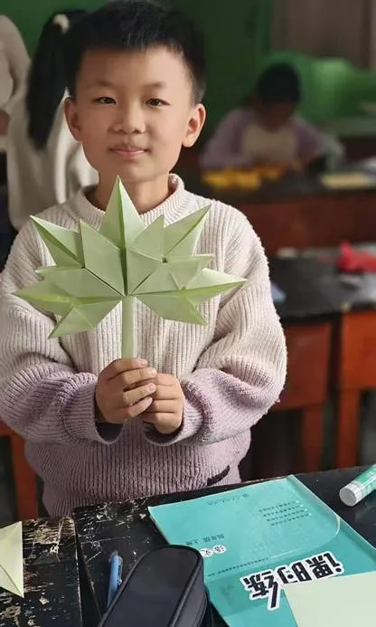 半小时后,一片片色彩各异的“枫叶”新鲜出炉:火红的似烈焰,金黄的如暖阳,翠绿的像碧玉。同学们将作品串成风铃、贴成装饰画,脸上洋溢着满满的成就感。这场活动不仅让大家学会了折纸技巧,更在实践中感受了秋天的美好,培养了耐心与创造力。(赵彬洋 常阳)