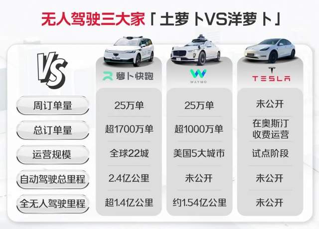 萝卜快跑、Waymo、特斯拉数据对比