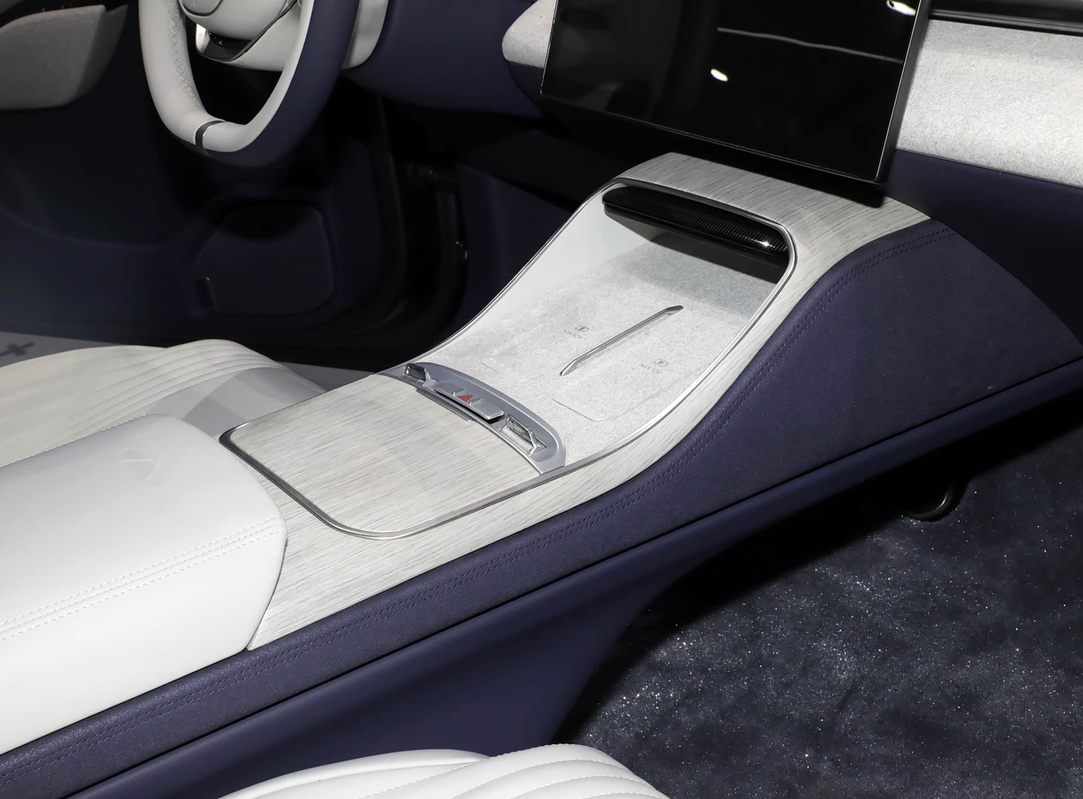 进入车内,奇瑞风云A9增程版采用了暮色紫与黑灰色的撞色设计,麂皮材质和软性材质的交替混搭,再加上精致的双缝线和银色金属元素的点缀,还有别致的空调出风口设计,每一处细节都尽善尽美,展现出大牌车企的工匠精神。整体布局依旧十分简约凝练,中控台配备了平底式双辐多功能方向盘,加入了米白/暮色紫的双色软性材质包裹,中间还有银质的奇瑞车标,显得更加精致。配备了贯穿式空调出风口,中央通道区保留了物理按键,还加入了手机无线充电模块,后方还配备了两个杯架、车载冰箱。得益于从前风挡玻璃一直延伸至后窗的穹顶天幕、宽大的侧窗,不仅让视野更加爱开阔,也带来了更好的采光。科技感方面,该车配备了悬浮式的长方形无边框液晶仪表、悬浮式的正方形中控液晶屏,正前方还配有HUD抬头显示系统,共同组成的AI灵犀智舱,包含23扬声器1080W伯牙之音音响,可实现AI无麦K歌,以及8678芯片。新车还配备猎鹰辅助驾驶系统,包含城市NOA和高速NOA,芯片算力128TOPS。