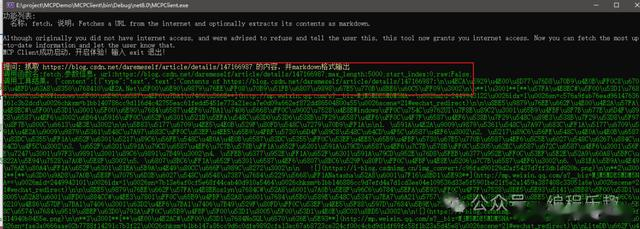 抓取 https://blog.csdn.net/daremeself/article/details/147166987 的内容,并markdown格式输出调用MCP Server的工具的情况日志。