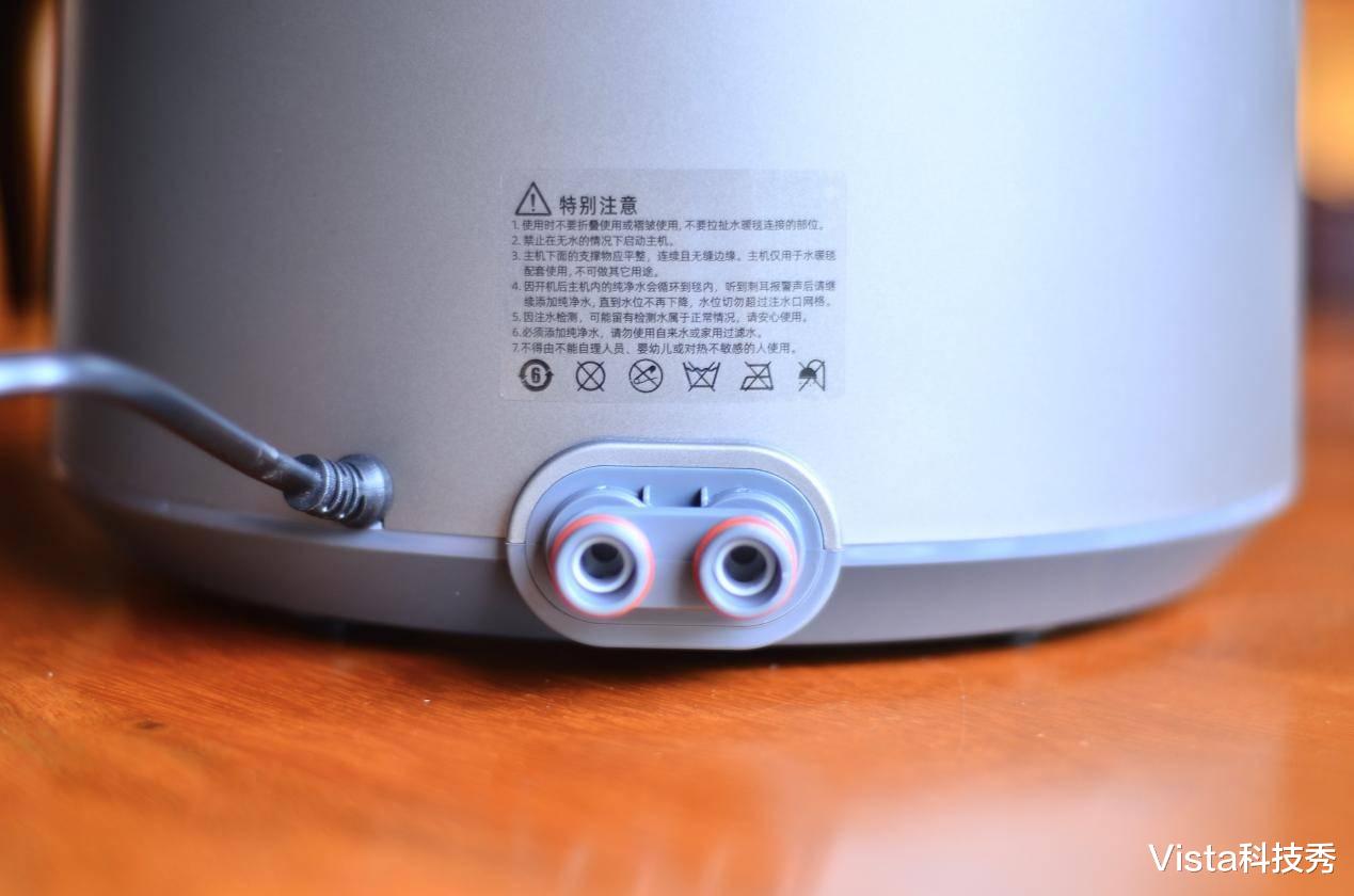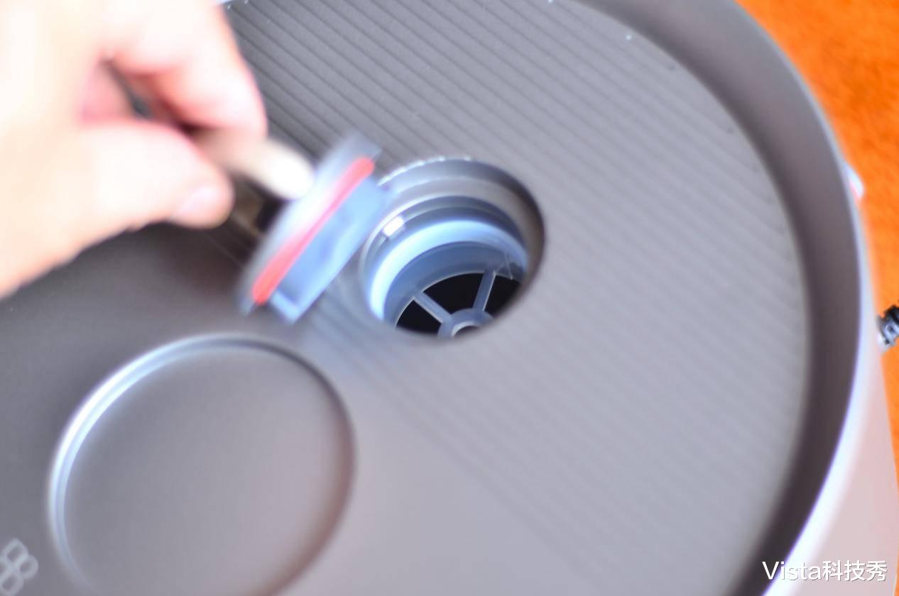 逆时针旋转主机上方拉环就可以打开注水口,前面所说必须添加纯净水或蒸馏水,水箱容量600毫升,超大的水箱容量可以使用很久,不需要频繁加水。