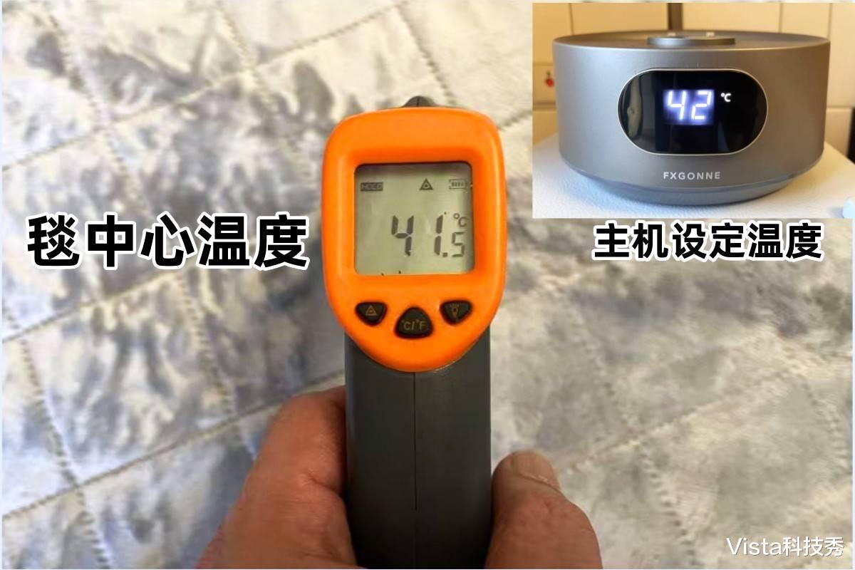 宫菱水暖毯具备精准的控温技术,这主要得益于专属优化的双核PE恒温系统、WOS智能控温算法、NTC控温阵列,以及双重复温结构搭配全封闭一体化,主机设定了42℃,当水暖毯达到设定温度后,测得水暖毯中心温度为41.5℃,温差仅仅为0.5℃,精准的温控可以放心入眠,特别是严寒下整夜开启水暖毯的情况下,毯面温度始终保持在设定范围,避免过度加热或反复升温,不会发生烫伤或水暖毯失温的问题。