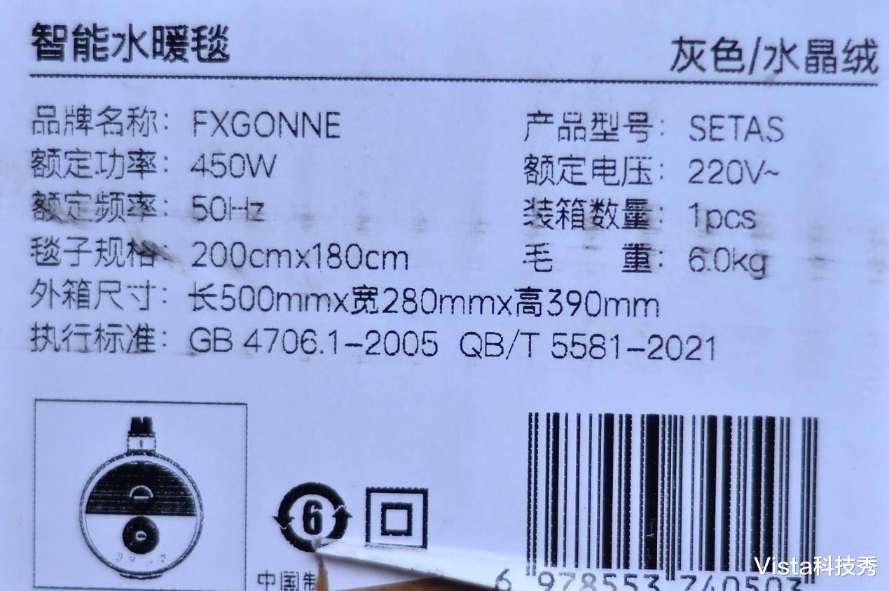 宫菱水暖毯尺寸为家庭常见床铺的尺寸,分为150*180cm、180*200cm两款,我入手的灰色水晶绒180*200cm款,450W的功率非常节能,一天下来只需要0.5度电,比起电热毯要环保节能很多。