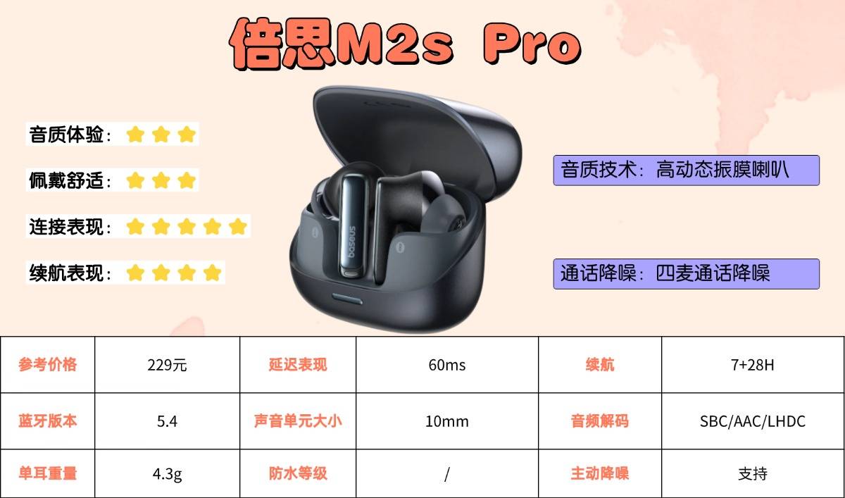 倍思M2s Pro在实际使用中展现了出色的主动降噪能力。其-52dB的降噪深度能够有效过滤通勤途中的轨道噪音与人声干扰,大幅削弱环境杂音。用户还可通过配套APP在十档降噪强度间自由调节,例如在办公室场景下选择合适档位,既能屏蔽空调等持续底噪,又不至于错过同事的交流。