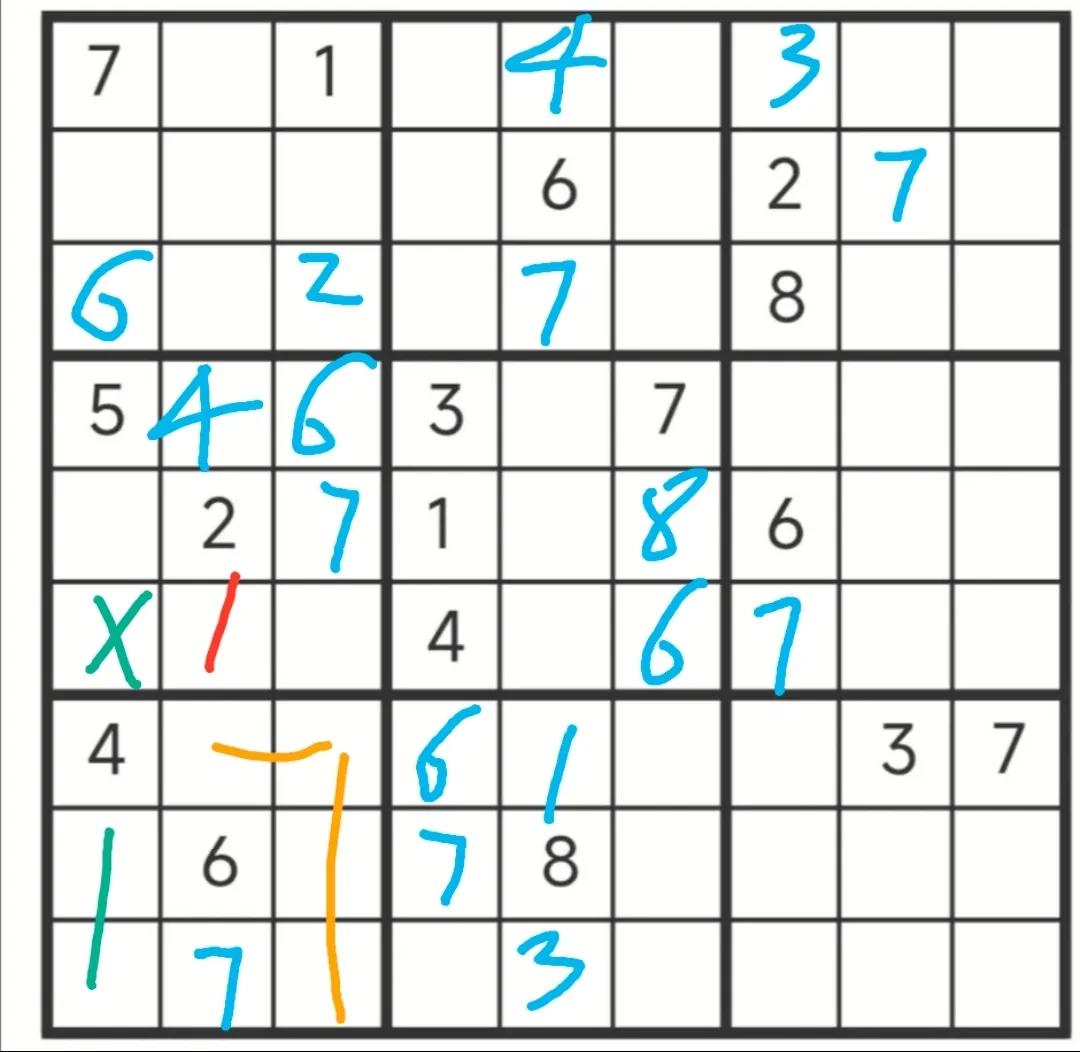 后面就有点难度了,费了好大劲,才找到这个1的突破口,利用第四宫与第七宫才推导出来。