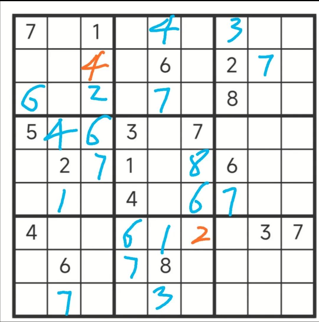 这道数独难度适中,可以直接推理完成,已知数为17个,缺9,我就喜欢玩已知数为20以下的数独,这样才有挑战性,不然没有什么意思。