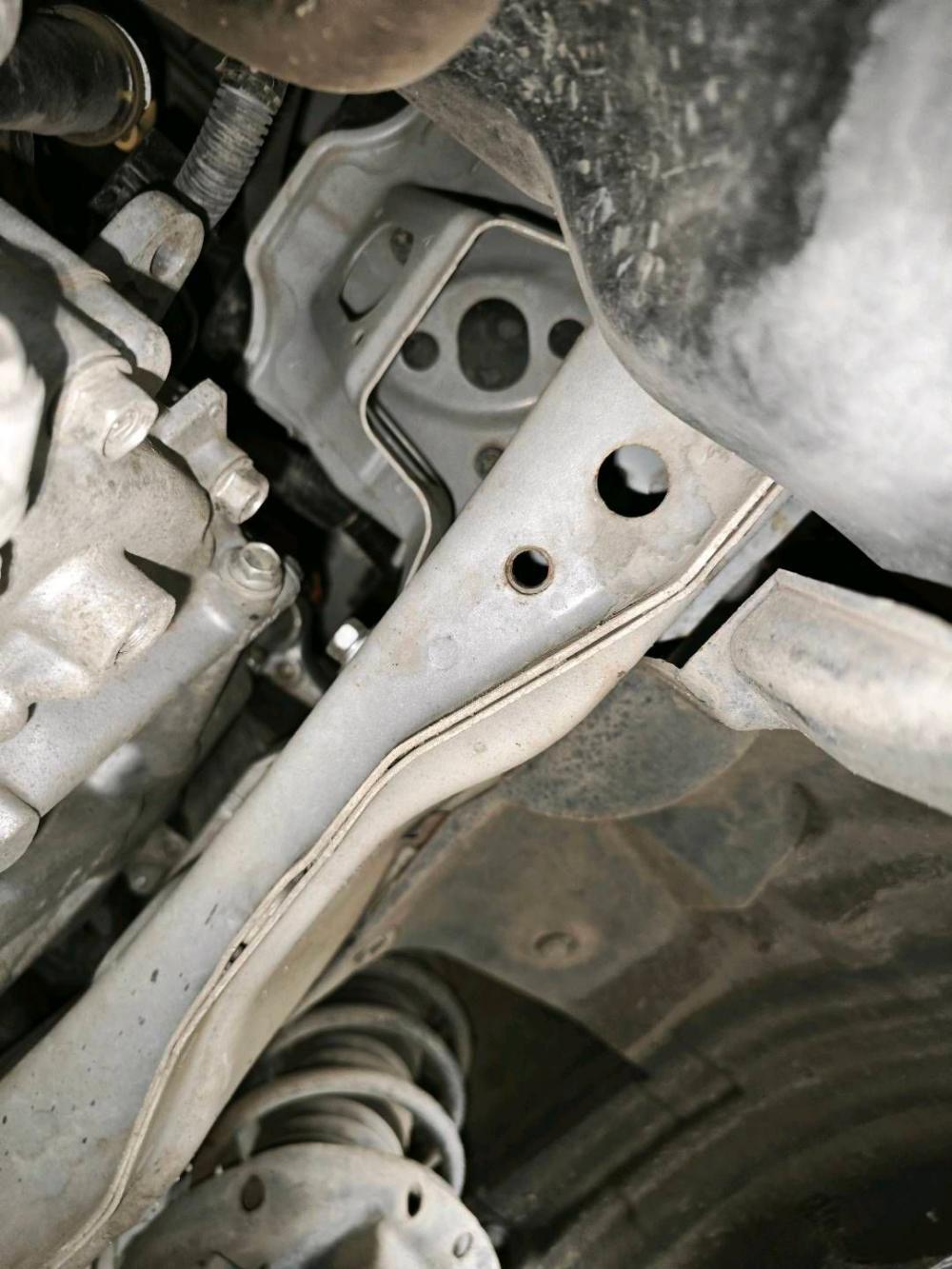 最后检测纵梁下部,没有托底变形,没有事故维修,不过看BBA车多了,这本田小车的纵梁,总感觉不是那么结实!