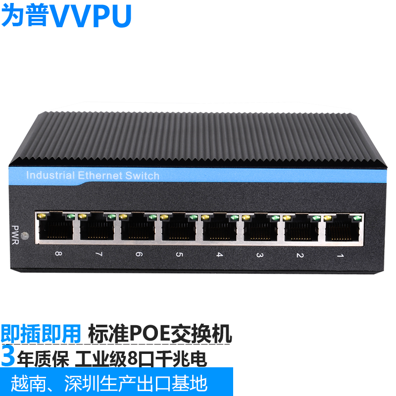 为普这款8口千兆国产芯片工业交换机是一款非管理型的网络设备,具有以下特点: