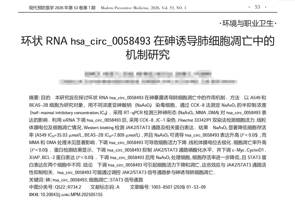 相关文献:环状RNAhsa_circ_0058493在砷诱导肺细胞凋亡中的机制研究