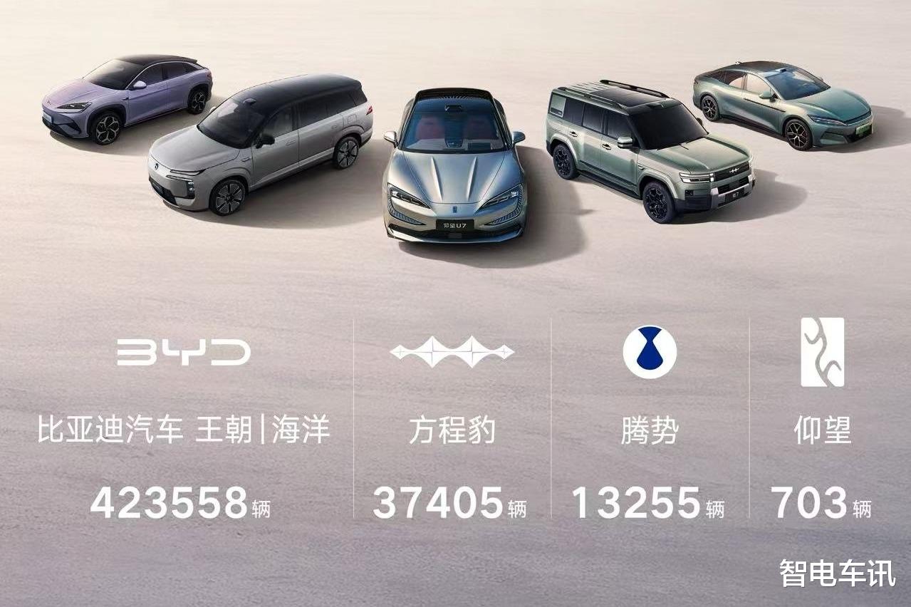 王朝与海洋系列作为基盘,月销超42万辆,稳居主流市场中心。而高端化与个性化赛道更是亮点纷呈:腾势品牌月交付13,255辆,环比增长超30%;方程豹品牌月销达37405辆,证明了比亚迪在高端个性化市场强大的品牌溢价与产品定义能力。