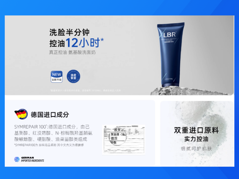 1. 全肤质选择:LBR多效氨基酸洁面乳产品定位:全场景兼容·清洁修护双优·男女通用·家庭共享