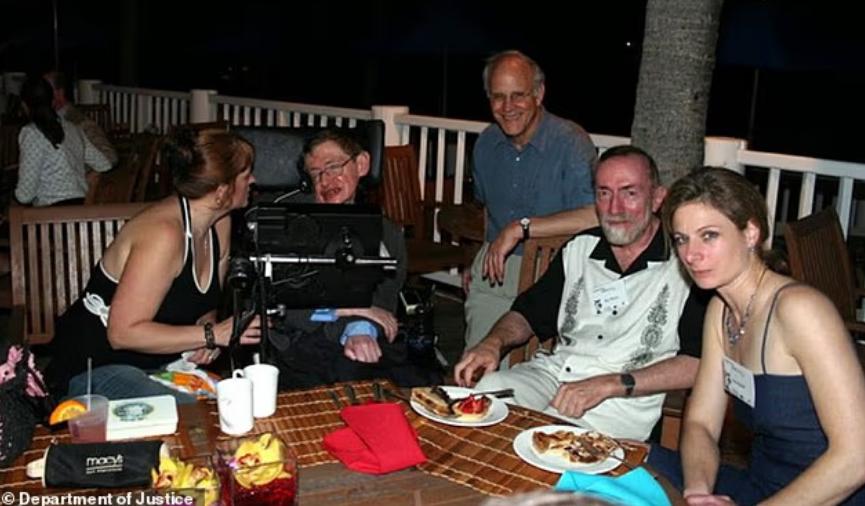 斯蒂芬-霍金与爱泼斯坦的主要关联来自2006年的一次科学会议(《非零空空间的能量》会议)。那年3月,霍金受邀参加爱泼斯坦资助的物理学研讨会,在美国维尔京群岛的圣托马斯岛五星级丽思卡尔顿酒店(每晚房价为1600美元约1.1万人民币)举行。会议讨论量子宇宙学等前沿话题,霍金做了主题演讲。活动期间,爱泼斯坦安排与会者到其私人小圣詹姆斯岛游玩,包括为霍金准备的潜艇观光。