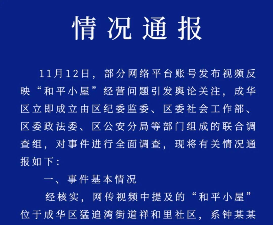 11月13日下午的时候,成都当地的官方终于不再沉默,而就马库斯和平小屋事件,进行了公开的通报。