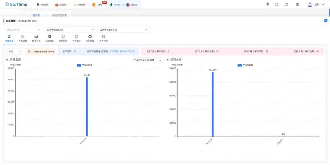 风暴的冲击已清晰体现在运营数据中。据Sorftime提供的TikTok“卖家看板”显示,不少此前活跃度较高的店铺运营节奏明显中断。以“medicube US Store”为例,该店铺在过去三个月内累计上新12款商品,但最近一个月却突然停止所有上新动作,新品数量归零,暴露出审核压力对日常经营造成的实质性干扰。