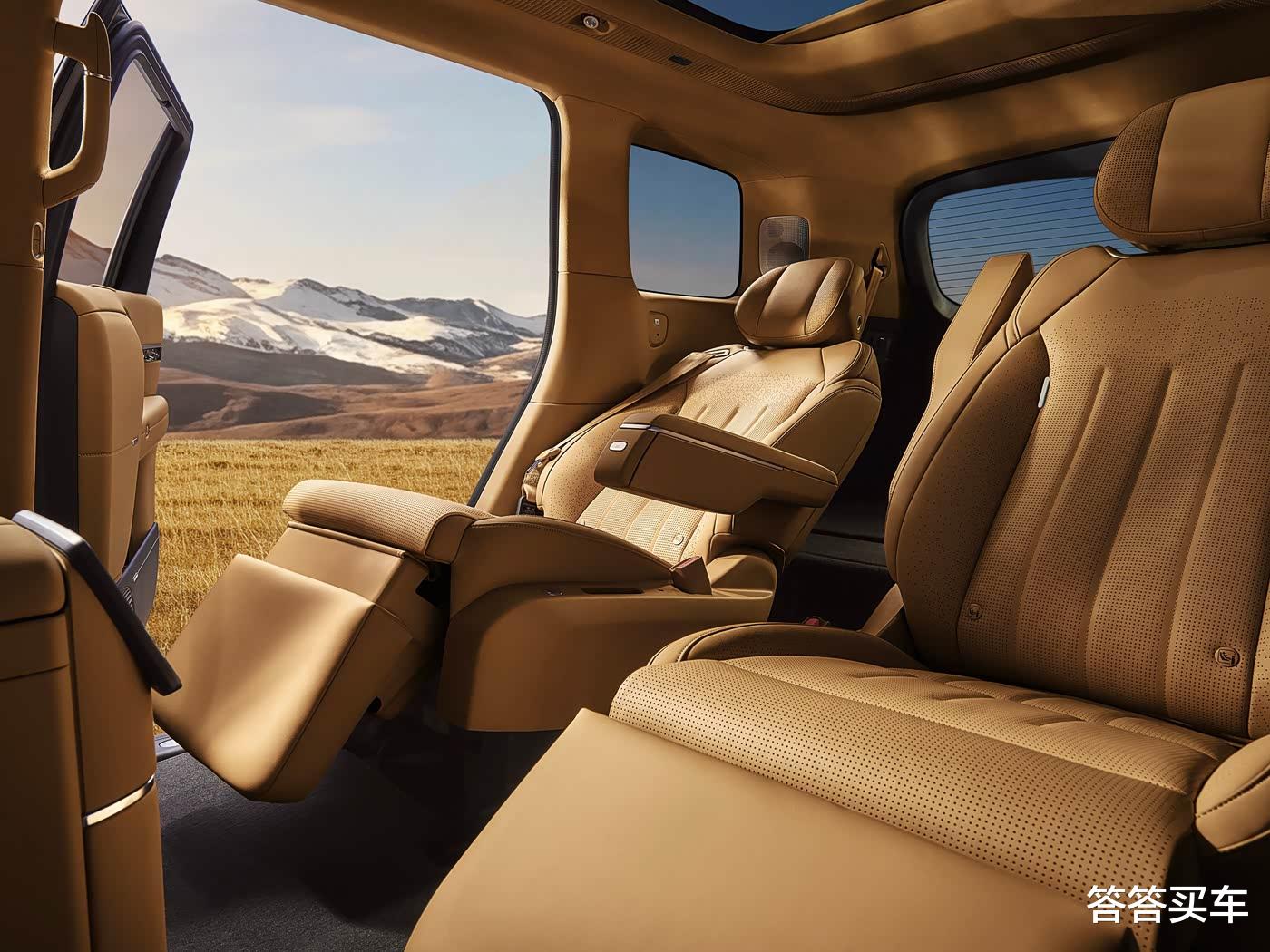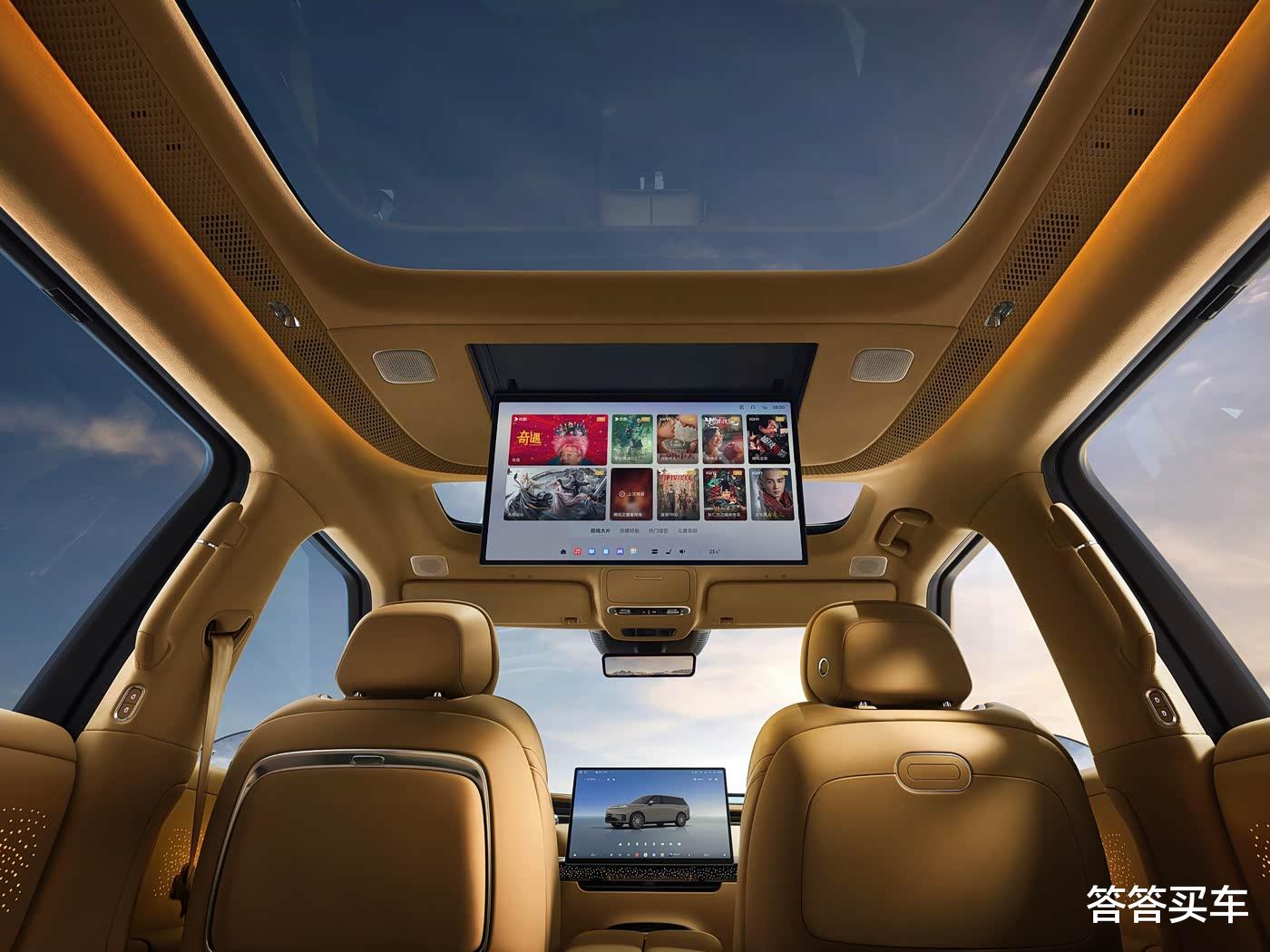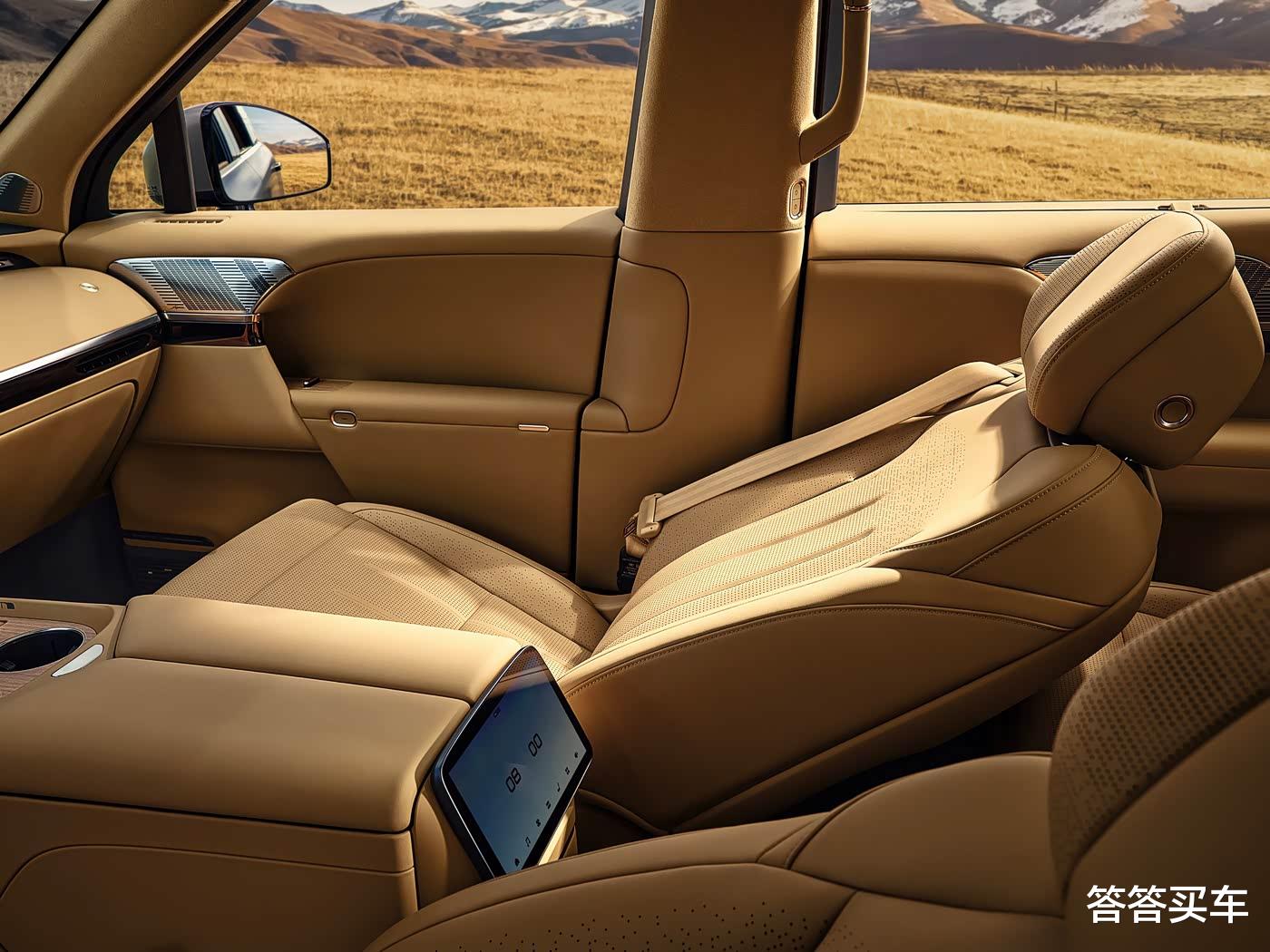 新车在车顶嵌入了可翻转娱乐屏,为二排乘客提供了左侧小桌板、右侧磁吸拓展坞等,二排座椅均提供电动扶手、16点按摩、16向电动调节、3挡通风/加热/腿托加热,左侧为飞航舒享座椅,右侧座椅依旧为零重力座椅。