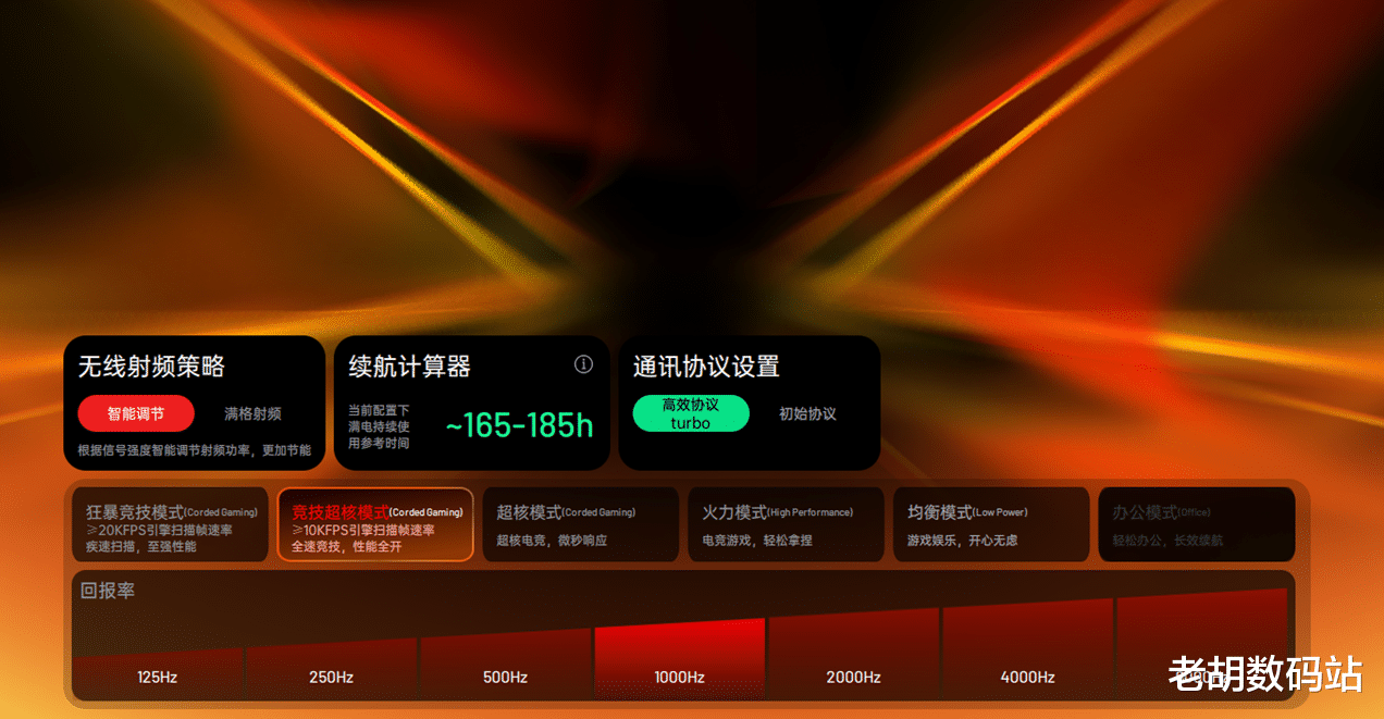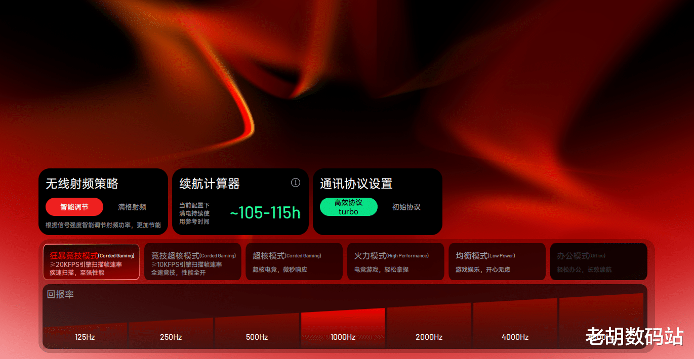 该产品引入了独特的“狂暴竞技”。全系列均搭载经过出色优化的NORDIC 54核心控制器,无论是标准款还是MAX款,均能充分发挥强劲实力。标准款也完整支持此模式,原生双8K回报率、超20000FPS扫描帧率,Power+炎龙固件加持,操作跟随感丝滑显著增强。