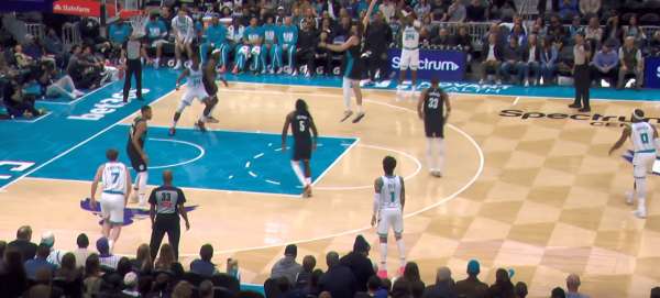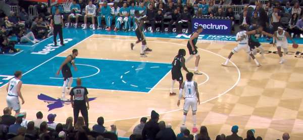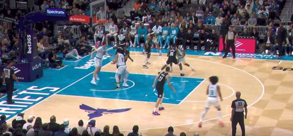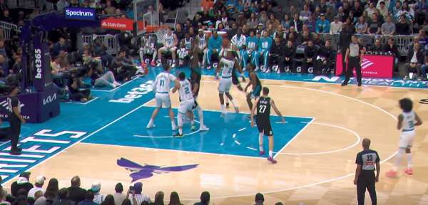 米勒弧顶为布里奇斯做有球掩护,随后快速slip溜至右侧,利用克林根未延误接球快速出手命中三分: