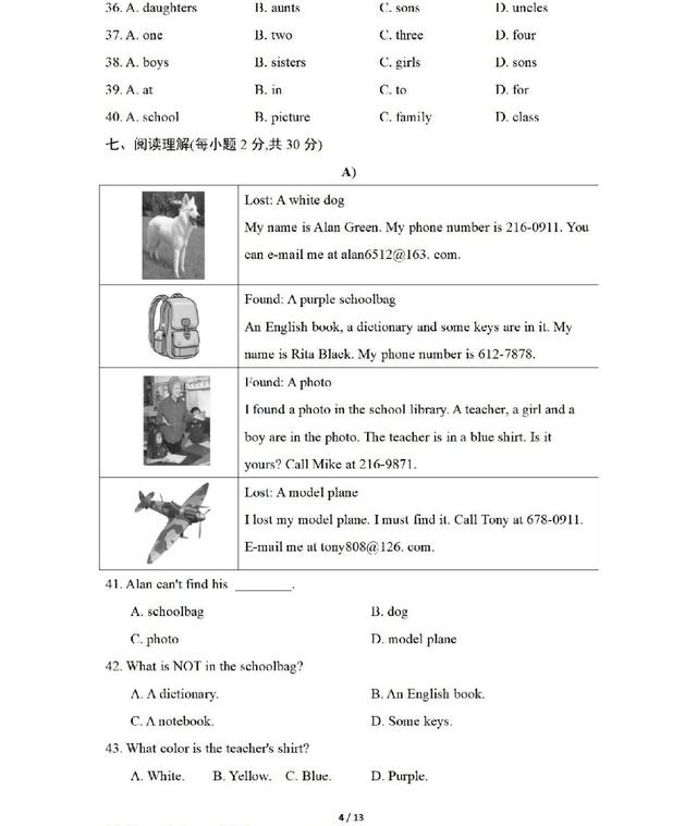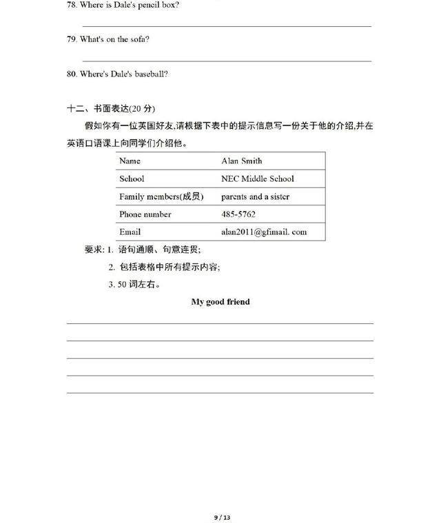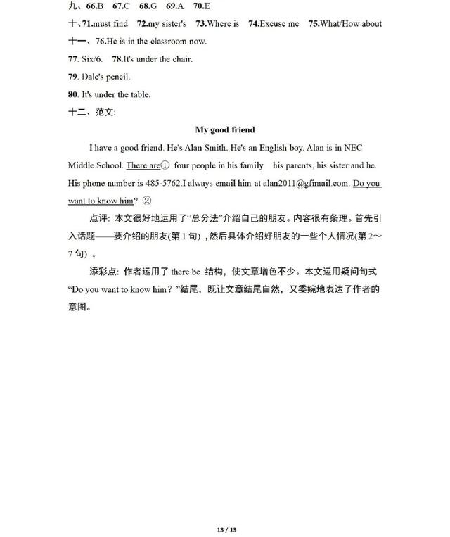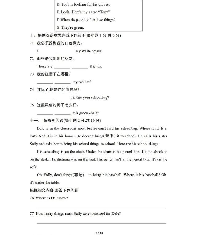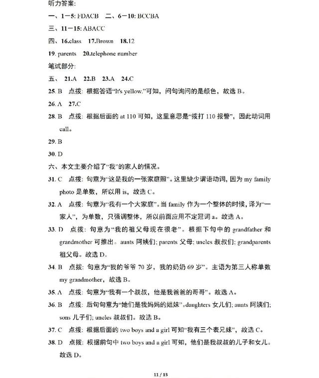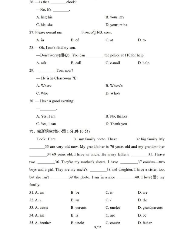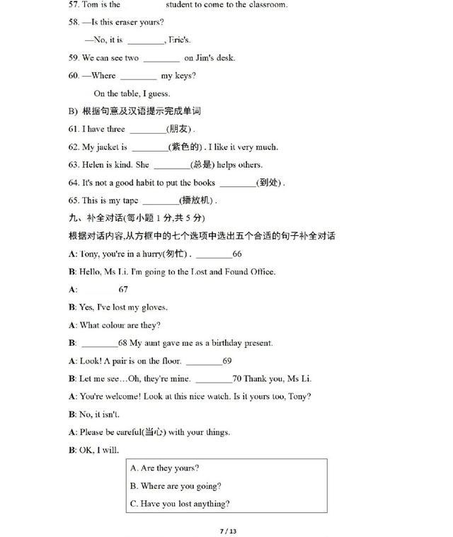 人教版英语七年级上册期中测试卷,一起练练吧