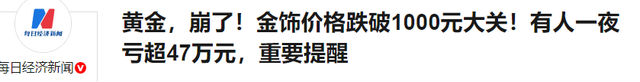 黄金,崩了!金饰价格跌破1000元大关!有人一夜亏超47万元,重要提醒 每日经济新闻