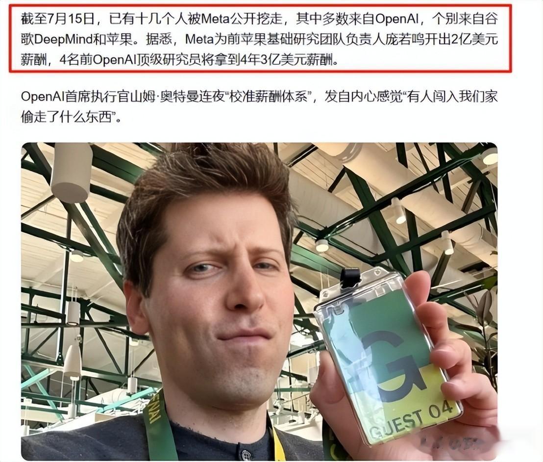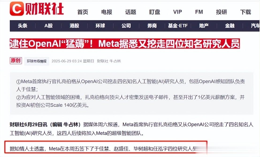 截至7月15日,美国知名企业家扎克伯格为Meta实验室挖走了4名中国ai行业的顶尖人才,他们将拿到4年3亿美元薪酬。