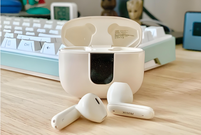 →外观方面,耳机采用半入耳式+侧柄设计,充电仓小巧便携,整体风格简约实用。佩戴方面,单耳仅约4.1g,人体工学半入耳结构,日常活动稳固不易脱落。音质方面,它配备12mm大尺寸高品质驱动单元,低频饱满有力、氛围感强;但中高频不够清晰通透。