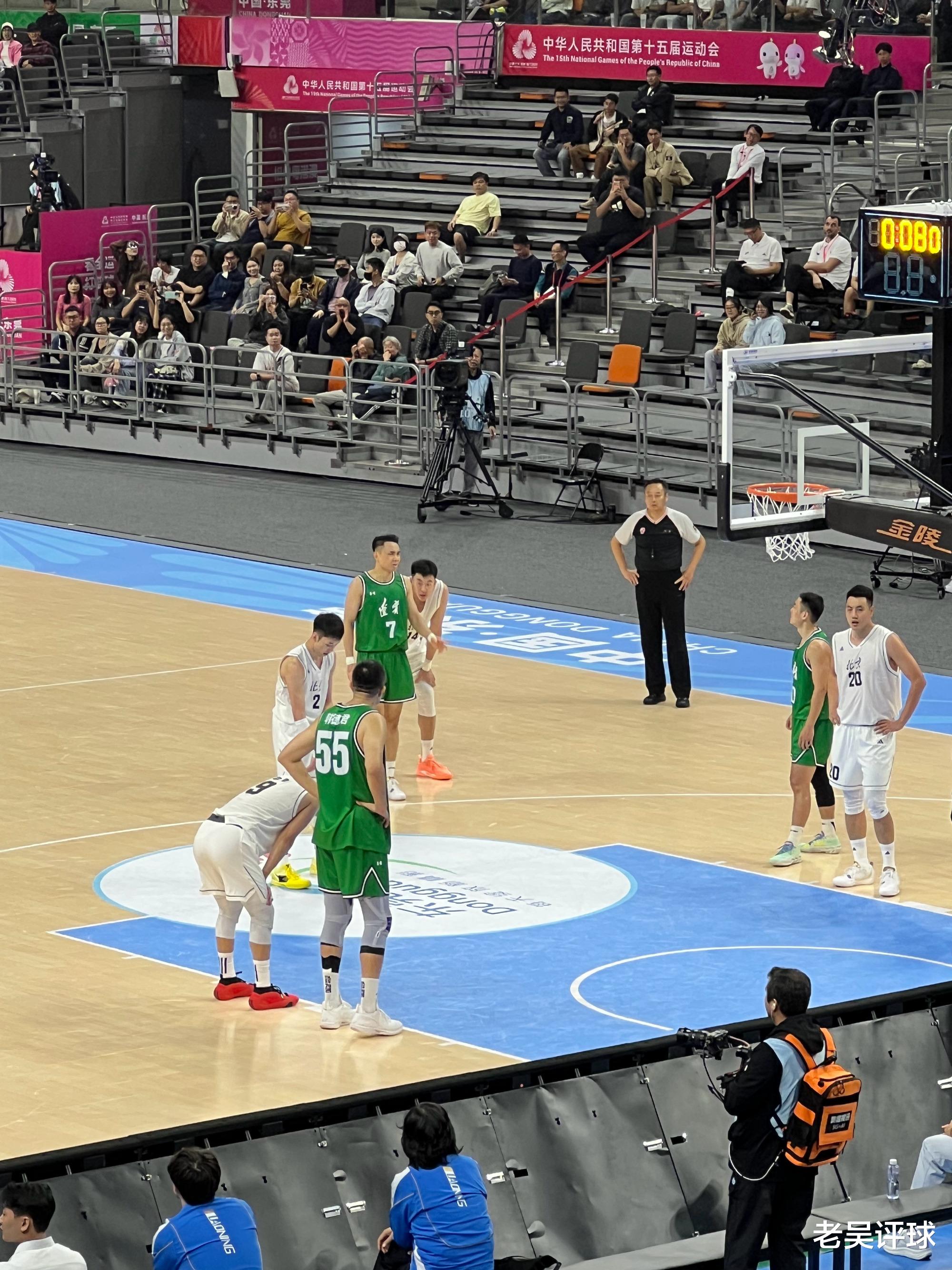 原帅投进三分,杨鸣在场边振臂高呼。杨指导对原帅也很信任。赵继伟几个长传太好看,找队友非常精准。感觉赵继伟始终憋着一口气,该释放就得释放,努力打球。全运会辽宁对北京半场比赛结束,辽宁队暂时领先5分。强度上来了,