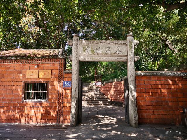 入口不过一方门大小,极是简单古朴。走近了细看,石坊上刻着“万石梅峰”四字——这是文人墨客对此山的雅赞,只因古时山中多白石,远望如白梅盛放。山名万石山,又称华表山。明代晋江人何乔远《闽书·方域志》云:华表山两峰角立如华表,山背之麓有草庵,元时物也,祀摩尼佛。