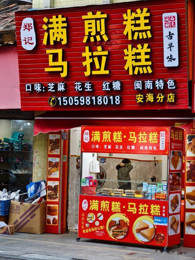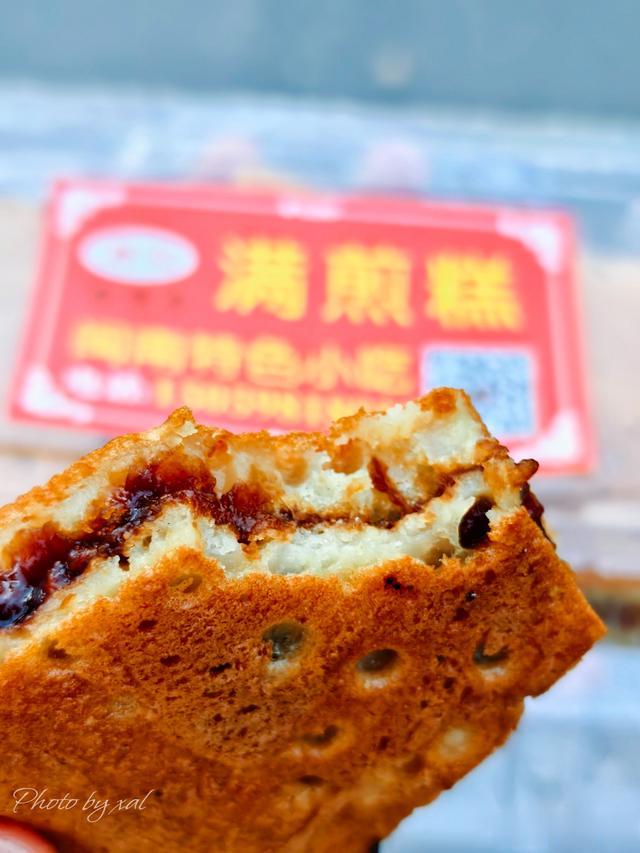 沿着下墟巷,走到海八南路。这里有家老字号沙嗲面馆,门口一直有人在排队。旁边不远处的郑记闽南特色满煎糕,也有当地人专程开车来买。六块钱,满满一盒。我们过去买了一盒红糖味的,拿到手还热乎乎的。咬上一口,红糖流心,是小时候那种醇厚浓郁的味道!