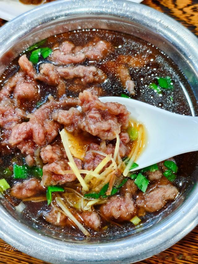 一份招牌牛肉羹。不是那种碎肉沫,是一块一块滚了地瓜粉的牛肉。入口香鲜嫩滑,十分美味。