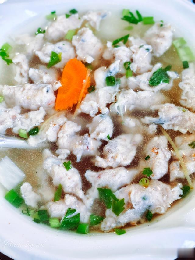 马加羹,说通俗点就是鱼丸汤。鱼丸是以马鲛鱼肉为原材料手打制成的,咬劲十足。配料佐以姜丝、白萝卜块,和一点葱花,整体比较清淡,搭配姜母鸭再好不过了。