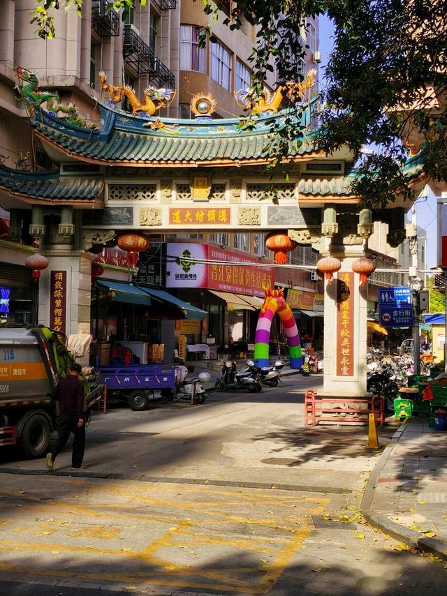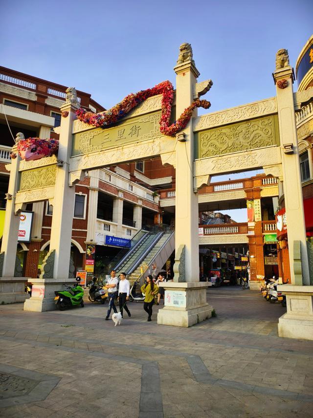 瑞光塔之东,连着“三里街”。从牌坊下面走进去就是。这是闽南最早的骑楼商业街,比泉州和厦门的中山路还要早一点。主体建筑采用的花色红砖,拼贴后自成绵密均匀的黑色波浪纹饰,风情独特。