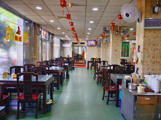 店铺远比想象的大,是一幢子母楼。子楼是厨房和点菜区。一进门就看见几个大炉子,上面放着几口大炖锅,锅里咕噜咕噜地煮着各种大菜。旁边还有选菜的冷柜和水产海鲜缸。加之厨房油烟机传来的嗡嗡轰鸣声,整个一副拥挤、嘈杂、又红红火火的情形!主楼就餐区的装修明显老派,胜在空间宽敞。
