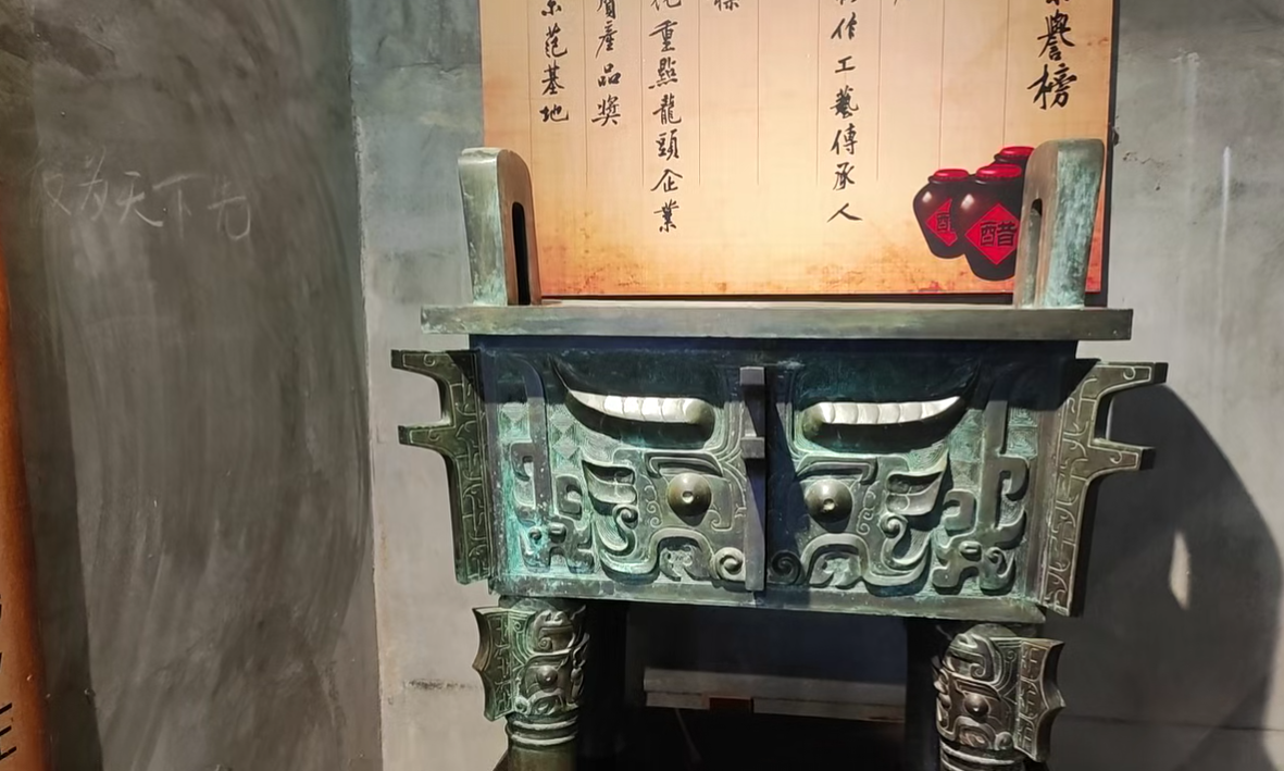 这尊鼎,自古是权力与诚信的象征。在此,它寓意着三秋公司‘一言九鼎’的承诺。展柜中,从汉代的陶罐、清代的青铜器,到古老的盛醋器皿、农用工具,无不诉说着醋与中华文明同频共振的悠长历史。