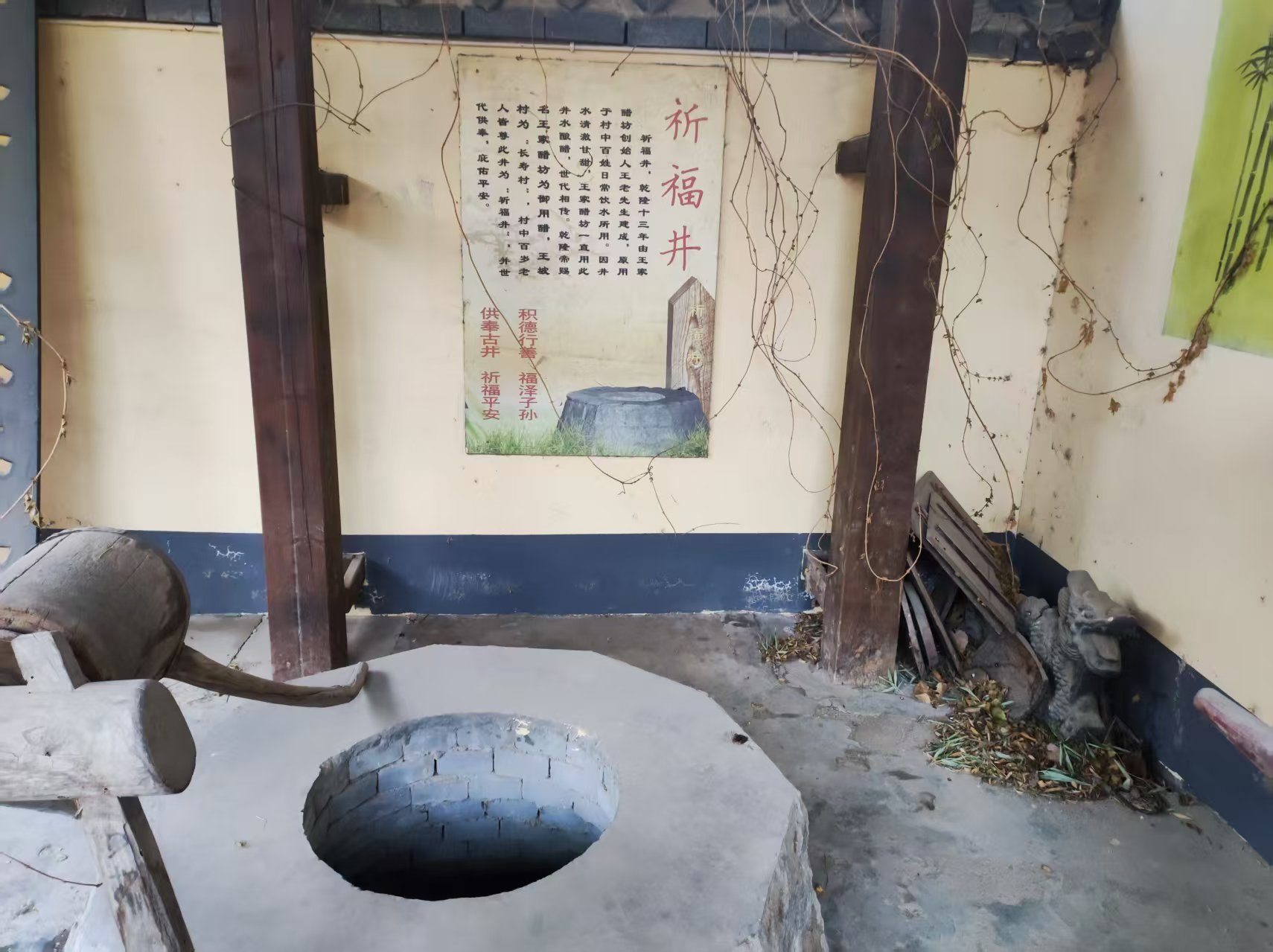 移步左侧,这口静默的‘祈福井’,是醋坊的灵魂,也是一段民族气节的见证。它曾滋养一方百姓,更在危难之际,守护了珍贵的酿造秘方。当年,王家先人为免配方落入敌手,毅然将其深藏井底,覆土伪装。直到云开雾散,才重见天日。这口井,因此被称为‘祈福井’。如今,我们在此祈福,祈愿的不仅是家国平安,更是对这份坚守与智慧的一份敬意。三秋醋博园选址于此,正是对这份根脉的守望。
