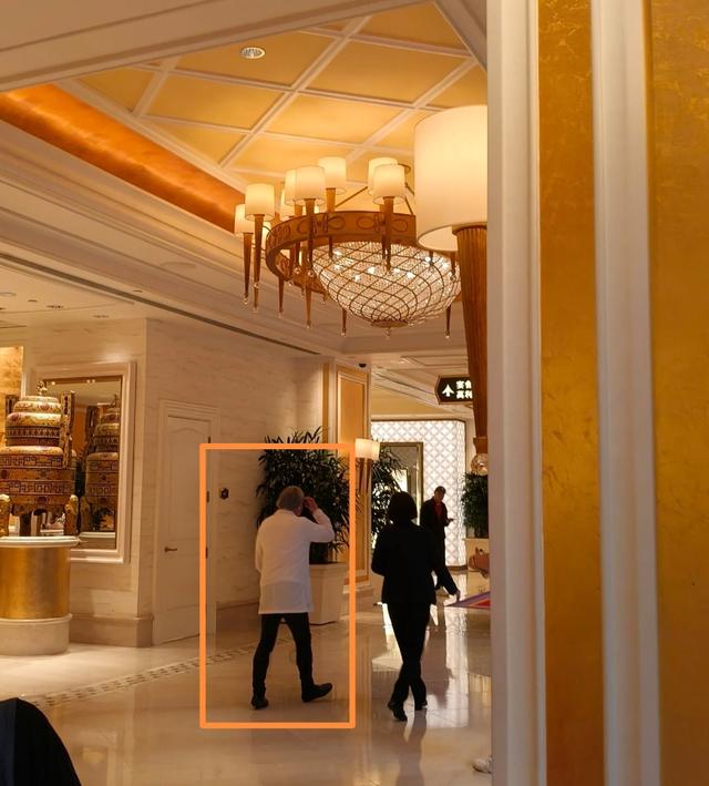 另外一位网友是在美高梅博物馆遇到他的,也分享了多张照片。有两张照片里,他一身打扮很正式,身穿白色衬衫,外搭黑色西装外套,下搭西装裤,脚穿皮鞋。