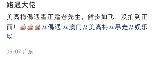 近日,有网友在澳门偶遇到他。其中一位网友说,是在美高梅看到他,夸他走路健步如飞。