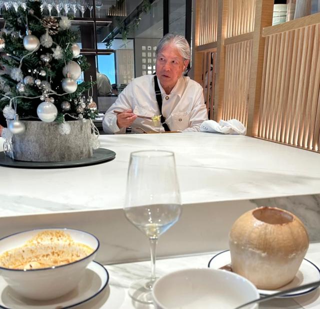 去年12月,他一个人现身新加坡某餐馆,一边吃海南鸡饭,一边戴耳机打电话。