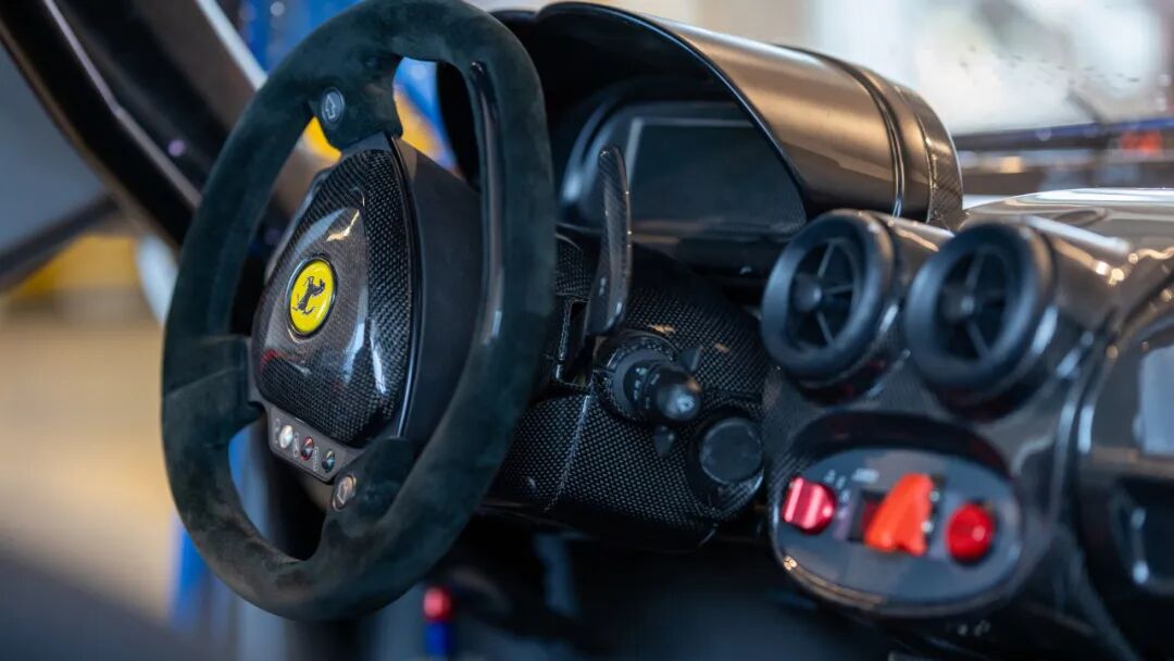 悬架搭载SCM磁流变减振器,并通过中控台上的“Manettino”旋钮提供九档可调牵引力控制。座舱布置极简,配备防滚架与碳纤维仪表台,但仍保留空调,确保客户在激烈驾驶的同时也能享受过程。