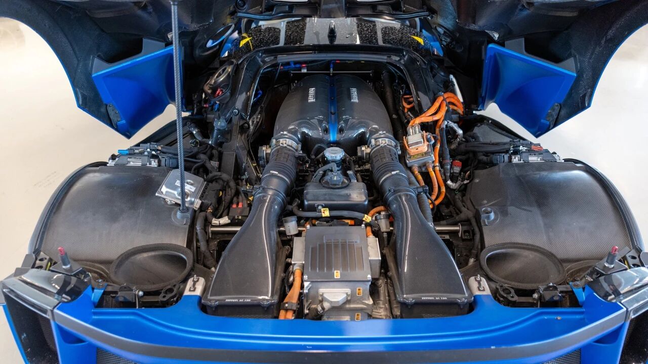 FXX K搭载源自F1的Hy-Kers混动系统,核心是6.3升V12 F140 FF发动机,经过改进的新凸轮轴、机械挺杆、抛光进气歧管及取消消音器的新排气系统,将最大功率提升至848马力。中央控制台的“Manettino”旋钮可提供四种电机辅助模式,其中一种可瞬间输出最大扭矩,额外增加187马力,使整车综合功率达到1,035马力,比LaFerrari多出85马力。