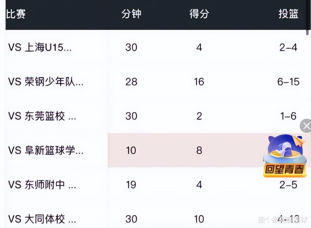 在U15的比赛中,代彦龙也未表现出统治力的篮下技术,命中率较低,篮板球也很一般,他如果想进入辽宁队的轮换还需要很长的时间。