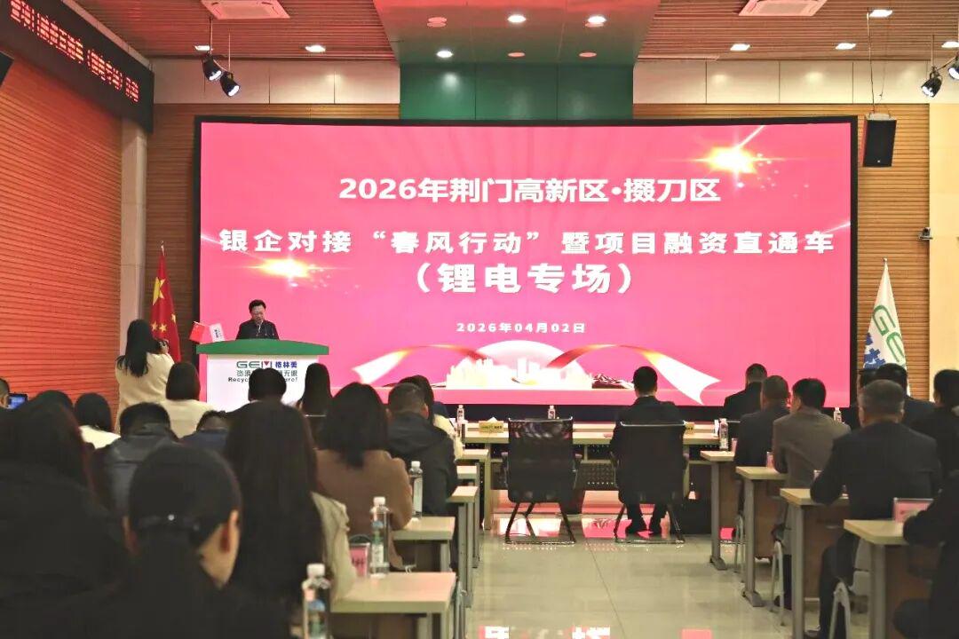 4月2日,2026年荆门高新区· 掇刀区银企对接“春风行动”暨项目融资直通车(锂电专场)活动在荆门市格林美新材料有限公司举行。这是荆门县市区首场、首个行业“项目融资直通车”活动,促成银企合作项目20个,达成意向融资51.45亿元。活动现场签约重点项目11个,签约意向金额39.5亿元,涵盖锂电新材料、供应链金融、动力电池回收利用、产城融合片区开发等多个领域,这些项目将为我区产业生态创新发展注入强劲动力。