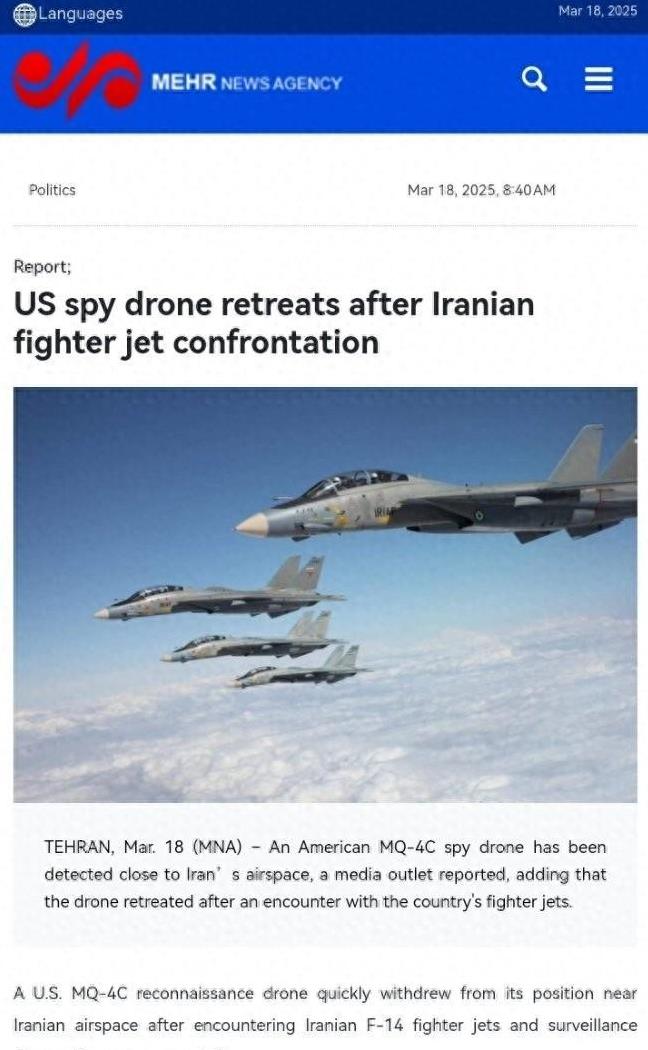 据悉,被逼退的MQ-4C隶属于美军第30无人侦察中队,该机型本月初刚完成对伊朗核设施的侦察任务。目前,美军尚未对拦截事件作出正式回应。