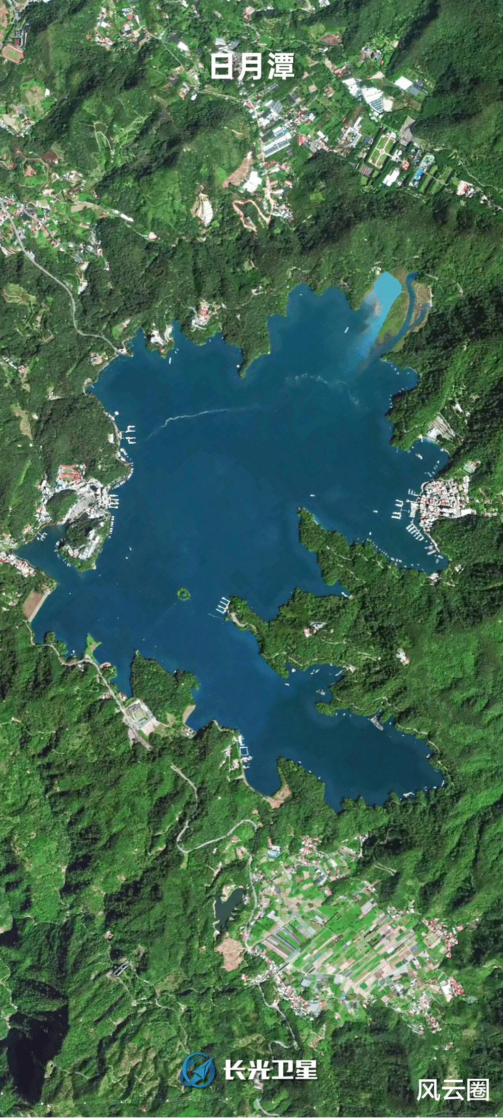 我们可以从太空视角看到日月潭的风光,也可以看到成片林海的阿里山,当然城市里的每条街道也看得清清楚楚,我们还可以在图片上看到台北港上繁忙的码头景象,如果耐得的下你的心,甚至你还能数得清有几艘船舶靠岸。