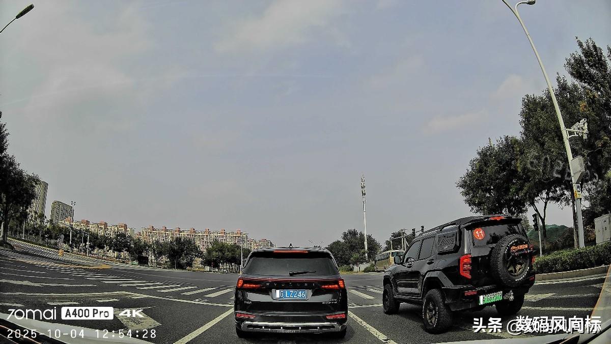 从1080P到4K,画质的提升堪称跨越代际。以前的旧记录仪的画面,只要光线环境稍微弱一些,画面就像是蒙了一层薄雾,远处车牌难以辨认,细节严重丢失,基本没什么参考价值。而A400 Pro的4K超清影像,拥有800万像素和3840×2160的分辨率,而且对暗光环境处理得更好,能轻松捕捉到行车中的细微变化。树叶的轮廓、远处指示牌的文字、甚至前车驾驶员的动作,都清晰可辨。