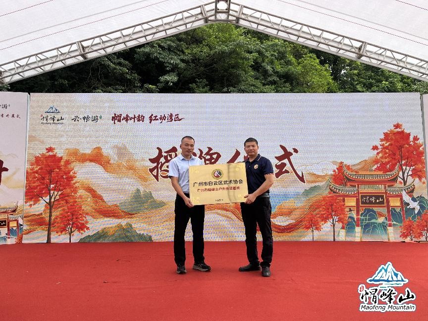 授牌环节上,白云区武术协会、广东省朗诵协会分别授予帽峰山 “广州市白云区户外拓展基地”“语言文化艺术实践基地” 称号,助力擦亮帽峰系列品牌,打造湾区“光明顶”与诗歌圣地。