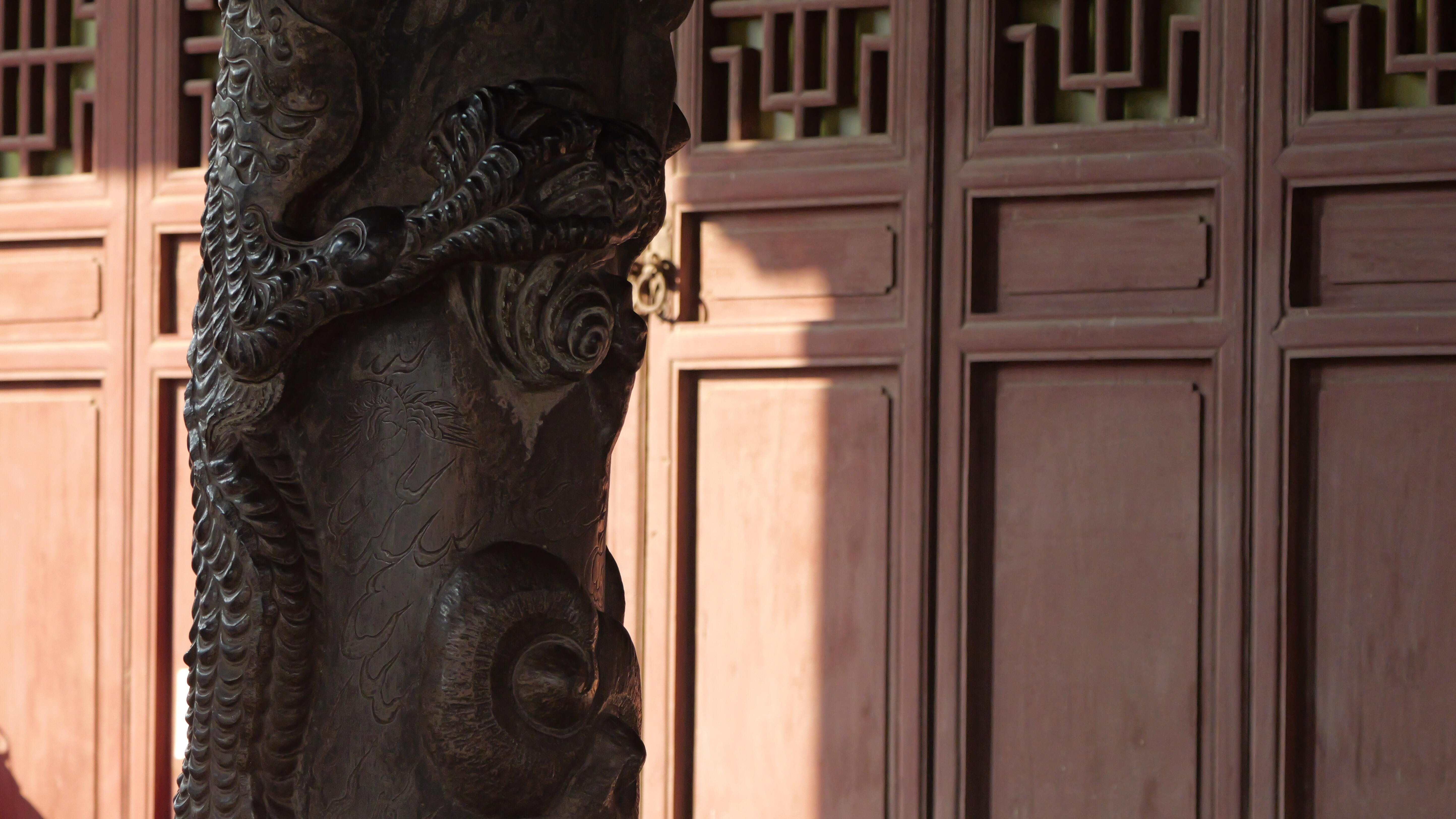 这些石雕最让人佩服的是“因材施艺”,匠人们根据青石的天然形态和纹理,设计雕刻图案,有的石头原本有一道裂纹,匠人便将其巧妙地融入图案中,化作河流、云雾,不仅掩盖了瑕疵,还增添了自然之趣。抚摸着这些冰冷的青石,能感受到表面的光滑细腻,那是岁月和无数人触摸留下的痕迹,而雕刻的纹路依旧清晰,棱角分明,仿佛是昨天才刚刚完工。这些石雕不像琉璃那样耀眼,也不像木雕那样精巧,却用最沉稳的姿态,默默诉说着千年的故事,需要你静下心来,俯身细品,才能发现其中的韵味。