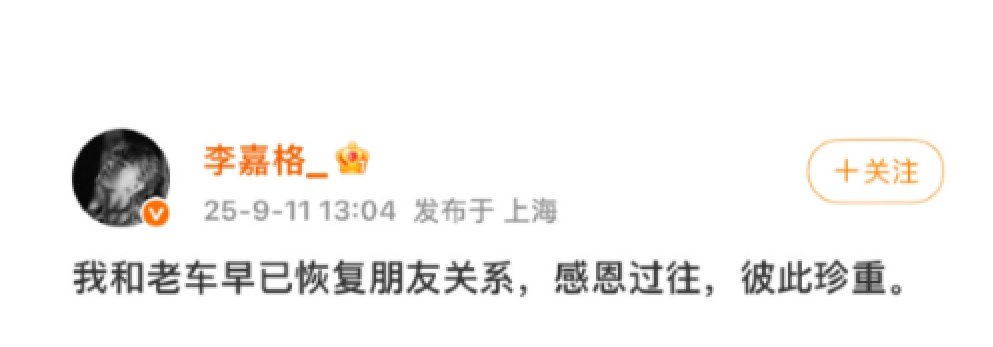 这场舆论风波成为压垮婚姻的最后一根稻草——9月11日,李嘉格在微博发布长文,直言“离婚是恢复朋友关系的唯一方式”,并透露离婚协议中明确规定“双方不得利用对方名义进行商业炒作”。