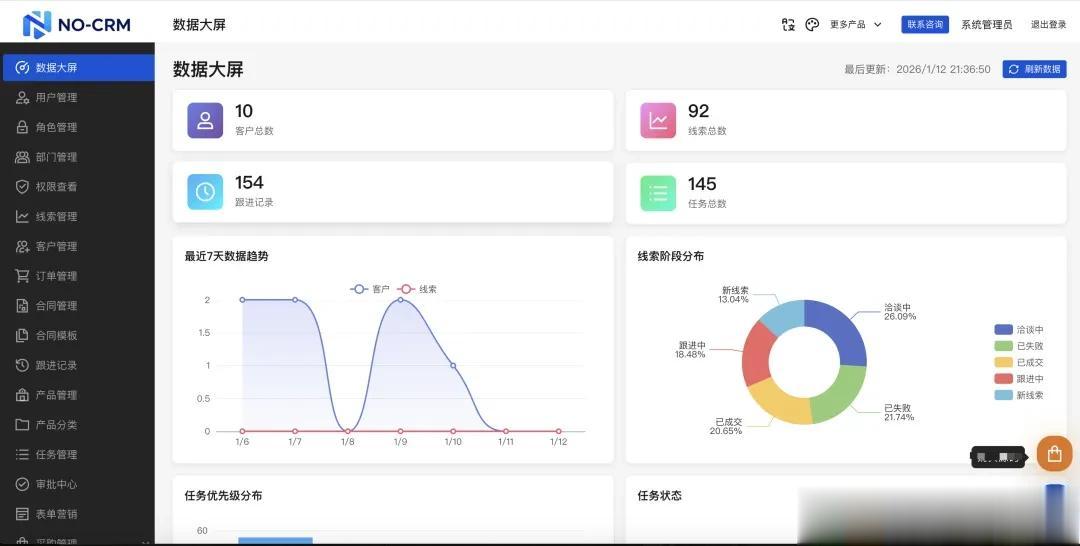 NO-CRM 是一款基于现代化技术栈打造的轻量级、高性能、易部署的客户关系管理系统。专为中小企业和初创团队设计,提供从客户管理到业绩分析的全流程解决方案。